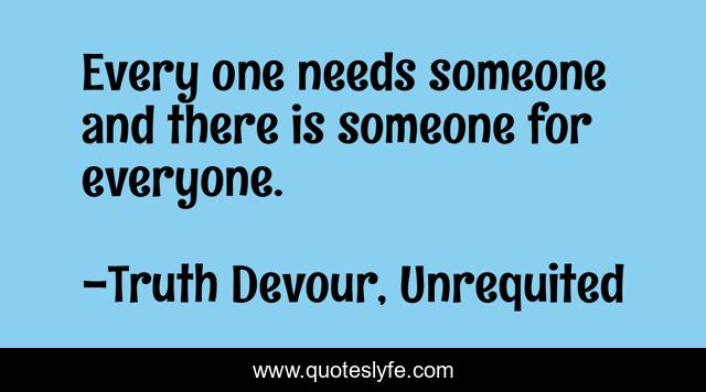 "Truth Devour, Unrequited Quotes." Quoteslyfe.com, 2025. Sat. 06 Dec. 2025. <https://www.quoteslyfe.com/quote/Every-one-needs-someone-and-there-is-171857>.