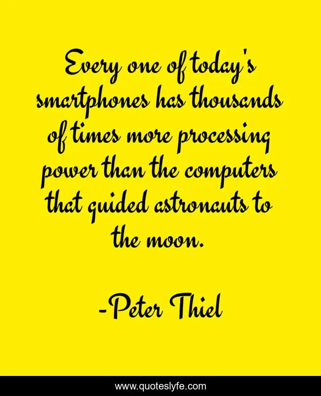 This page presents the quote "Every one of today's smartphones has thousands of times more processing power than the computers that guided astronauts to the moon.". Author of this quote is Peter Thiel. This quote is about today, power, moon,.