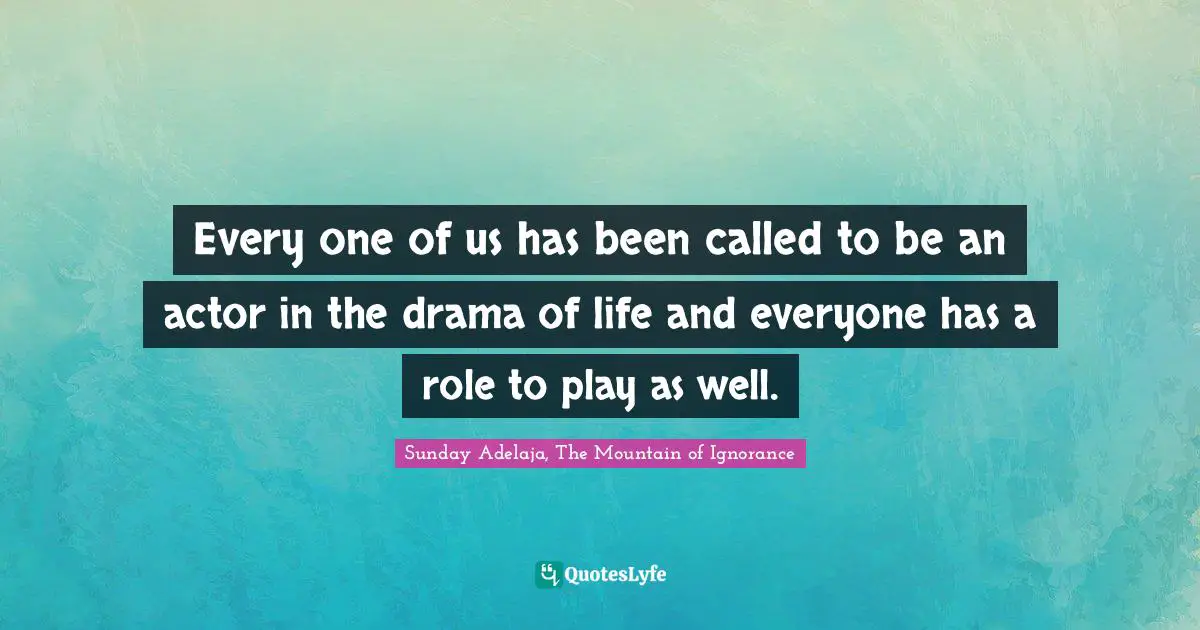 This page presents the quote "Every one of us has been called to be an actor in the drama of life and everyone has a role to play as well.". Author of this quote is Sunday Adelaja, The Mountain of Ignorance. This quote is about life, actions, conversion, productivity, wealth, actor, greatness, waste, humanity,.