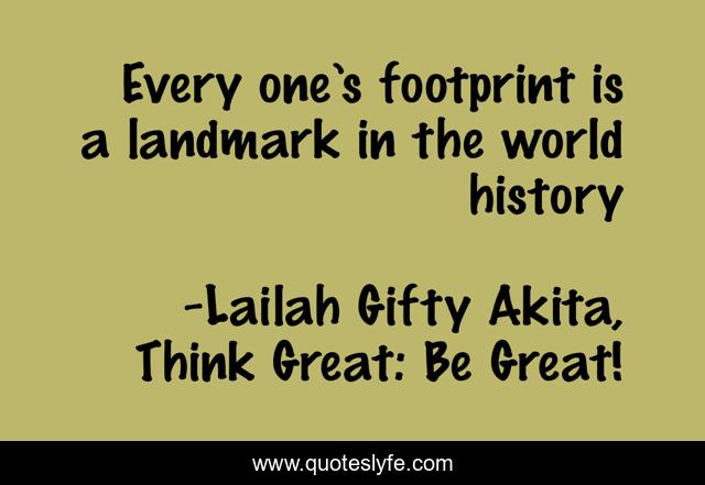 "Lailah Gifty Akita, Think Great: Be Great! Quotes." Quoteslyfe.com, 2025. Fri. 05 Dec. 2025. <https://www.quoteslyfe.com/quote/Every-one-s-footprint-is-a-landmark-70896>.