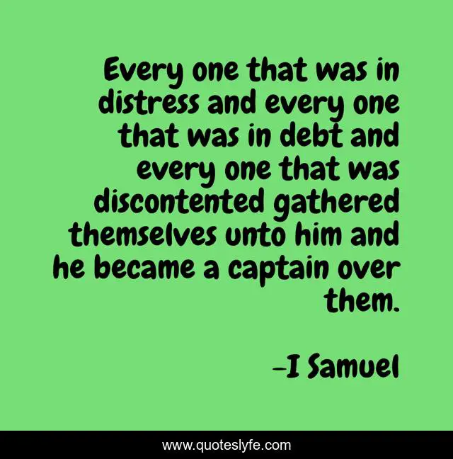 This page presents the quote "Every one that was in distress and every one that was in debt and every one that was discontented gathered themselves unto him and he became a captain over them.". Author of this quote is I Samuel. .