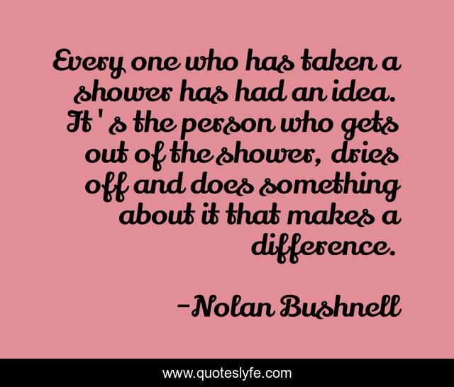 This page presents the quote "Every one who has taken a shower has had an idea. It's the person who gets out of the shower, dries off and does something about it that makes a difference.". Author of this quote is Nolan Bushnell. This quote is about shower, bushnell, creativity, thinking,.
