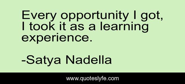 This page presents the quote "Every opportunity I got, I took it as a learning experience.". Author of this quote is Satya Nadella. This quote is about opportunity, experience,.