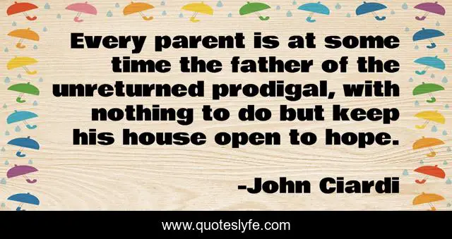 This page presents the quote "Every parent is at some time the father of the unreturned prodigal, with nothing to do but keep his house open to hope.". Author of this quote is John Ciardi. This quote is about father, parent, time,.