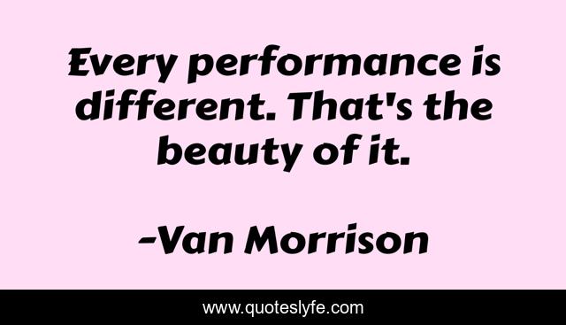 This page presents the quote "Every performance is different. That's the beauty of it.". Author of this quote is Van Morrison. This quote is about performance, different,.
