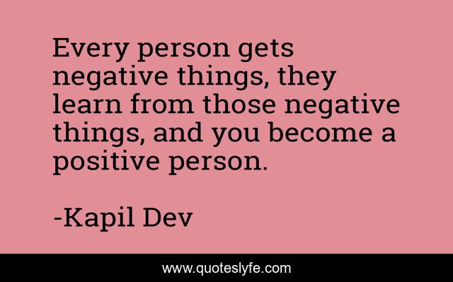 This page presents the quote "Every person gets negative things, they learn from those negative things, and you become a positive person.". Author of this quote is Kapil Dev. This quote is about negative, learn,.