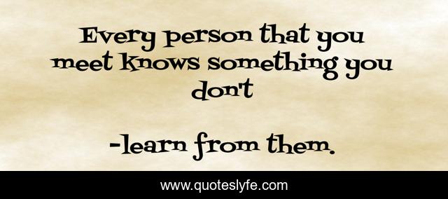 This page presents the quote "Every person that you meet knows something you don't". Author of this quote is learn from them.. .