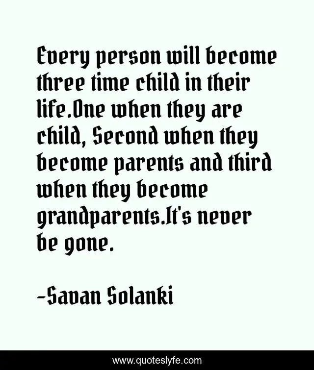 This page presents the quote "Every person will become three time child in their life.One when they are child, Second when they become parents and third when they become grandparents.It's never be gone.". Author of this quote is Savan Solanki. This quote is about life-and-living, childhood, child,.