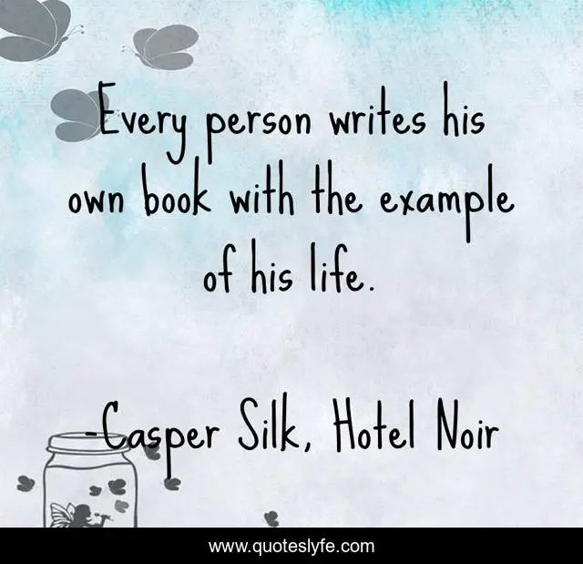 This page presents the quote "Every person writes his own book with the example of his life.". Author of this quote is Casper Silk, Hotel Noir. .
