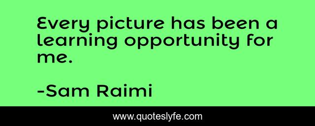 This page presents the quote "Every picture has been a learning opportunity for me.". Author of this quote is Sam Raimi. This quote is about me, picture, opportunity,.