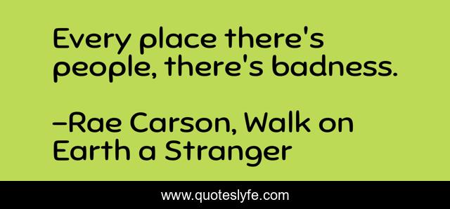 This page presents the quote "Every place there's people, there's badness.". Author of this quote is Rae Carson, Walk on Earth a Stranger. This quote is about bad, good, people,.
