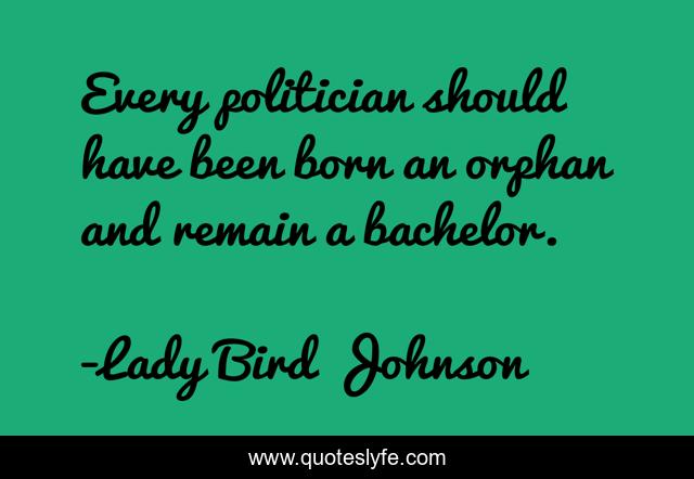 This page presents the quote "Every politician should have been born an orphan and remain a bachelor.". Author of this quote is Lady Bird Johnson. This quote is about born, bachelor, orphan,.