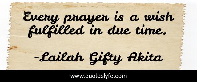 This page presents the quote "Every prayer is a wish fulfilled in due time.". Author of this quote is Lailah Gifty Akita. This quote is about wish, prayer, inspirational, enthusiasm,.