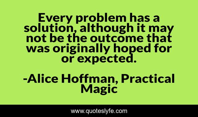 This page presents the quote "Every problem has a solution, although it may not be the outcome that was originally hoped for or expected.". Author of this quote is Alice Hoffman, Practical Magic. .