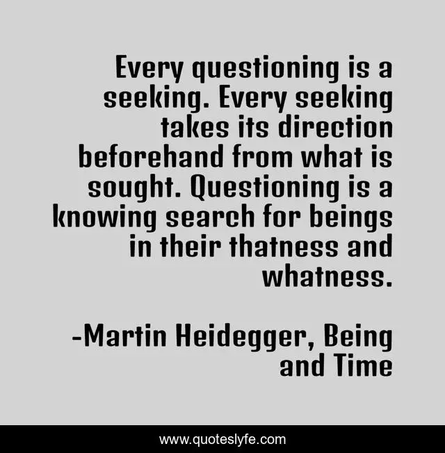 "Martin Heidegger, Being and Time Quotes." Quoteslyfe.com, 2025. Fri. 05 Dec. 2025. <https://www.quoteslyfe.com/quote/Every-questioning-is-a-seeking-Every-seeking-8802>.