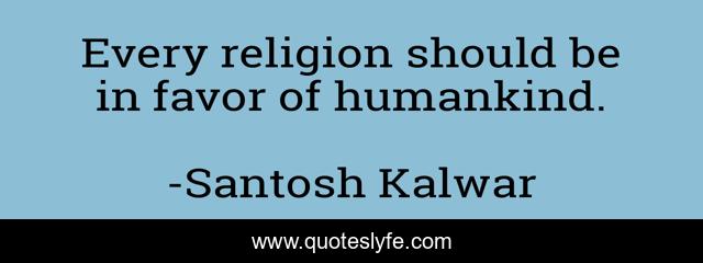 This page presents the quote "Every religion should be in favor of humankind.". Author of this quote is Santosh Kalwar. This quote is about favor, humankind, religion,.