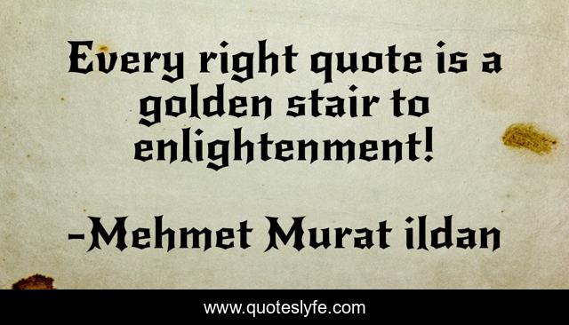 This page presents the quote "Every right quote is a golden stair to enlightenment!". Author of this quote is Mehmet Murat ildan. .