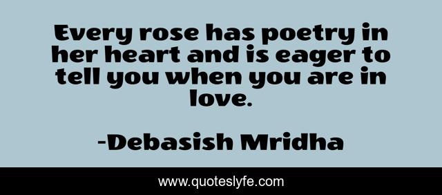 This page presents the quote "Every rose has poetry in her heart and is eager to tell you when you are in love.". Author of this quote is Debasish Mridha. This quote is about philosophy, every-rose-has-poetry, debasish-mridha, you-are-in-love, quotes, poetry-in-her-heart, inspirational, enthusiasm, debasish-mridha-m-d,.