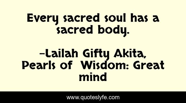 "Lailah Gifty Akita, Pearls of Wisdom: Great mind Quotes." Quoteslyfe.com, 2025. Sat. 06 Dec. 2025. <https://www.quoteslyfe.com/quote/Every-sacred-soul-has-a-sacred-body-63642>.
