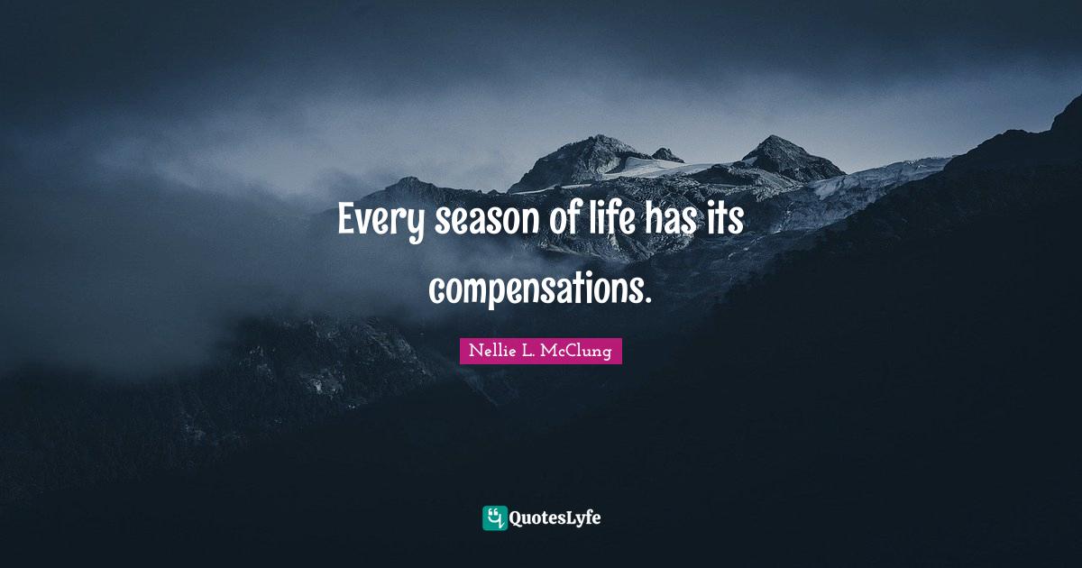 This page presents the quote "Every season of life has its compensations.". Author of this quote is Nellie L. McClung. This quote is about seasons of life, compensation, life,.