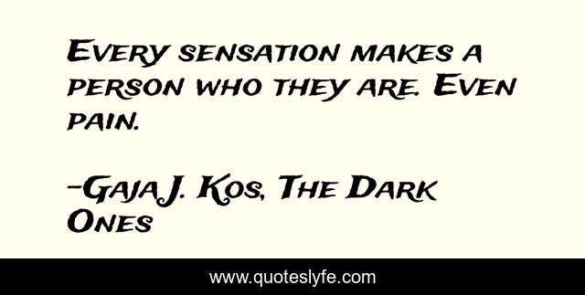 This page presents the quote "Every sensation makes a person who they are. Even pain.". Author of this quote is Gaja J. Kos, The Dark Ones. This quote is about life, pain, experience,.