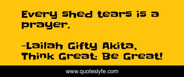 "Lailah Gifty Akita, Think Great: Be Great! Quotes." Quoteslyfe.com, 2025. Sat. 06 Dec. 2025. <https://www.quoteslyfe.com/quote/Every-shed-tears-is-a-prayer-114927>.