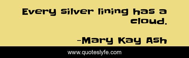 This page presents the quote "Every silver lining has a cloud.". Author of this quote is Mary Kay Ash. This quote is about silver, cloud,.