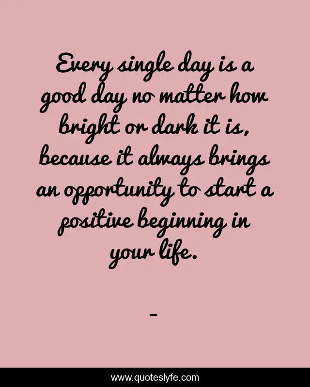 This page presents the quote "Every single day is a good day no matter how bright or dark it is, because it always brings an opportunity to start a positive beginning in your life.". Author of this quote is . This quote is about edmond-mbiaka, positive-new-beginning, good-day, bad-day,.