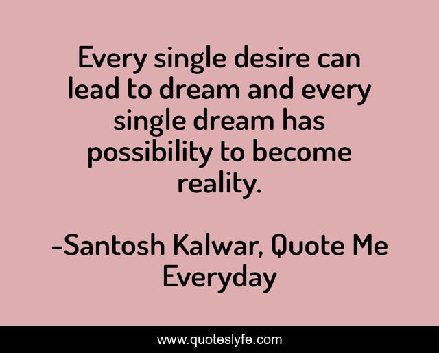 "Santosh Kalwar, Quote Me Everyday Quotes." Quoteslyfe.com, 2025. Sat. 06 Dec. 2025. <https://www.quoteslyfe.com/quote/Every-single-desire-can-lead-to-dream-3430>.
