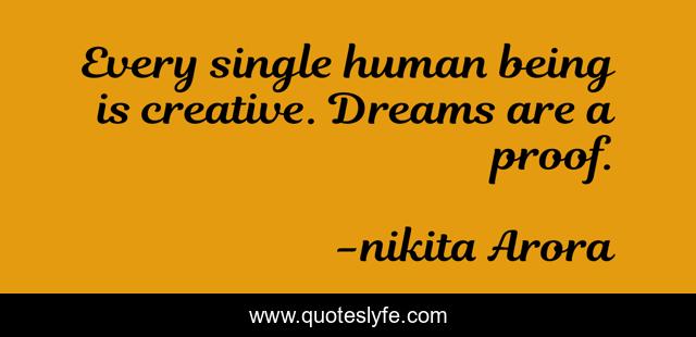 This page presents the quote "Every single human being is creative. Dreams are a proof.". Author of this quote is nikita Arora. This quote is about creativity, inspiration,.