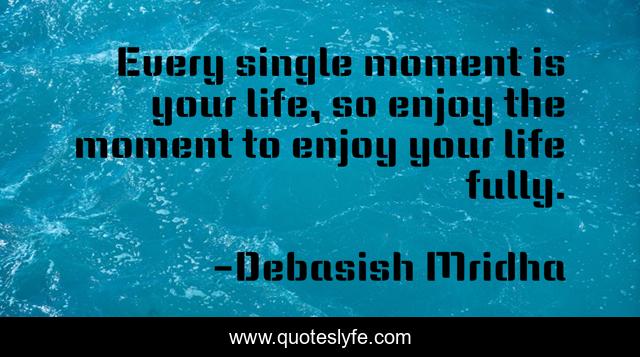 This page presents the quote "Every single moment is your life, so enjoy the moment to enjoy your life fully.". Author of this quote is Debasish Mridha. This quote is about life, debasish, enjoy-your-life, mridha, philosophy, debasish-mridha, enjoy-the-moment, single-moment,.