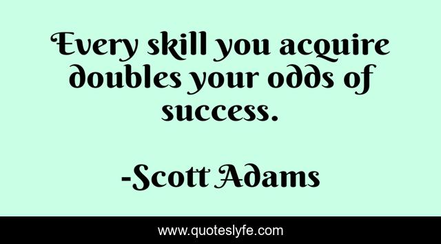 This page presents the quote "Every skill you acquire doubles your odds of success.". Author of this quote is Scott Adams. This quote is about skill, odds,.