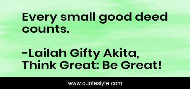 "Lailah Gifty Akita, Think Great: Be Great! Quotes." Quoteslyfe.com, 2025. Sat. 06 Dec. 2025. <https://www.quoteslyfe.com/quote/Every-small-good-deed-counts-124042>.