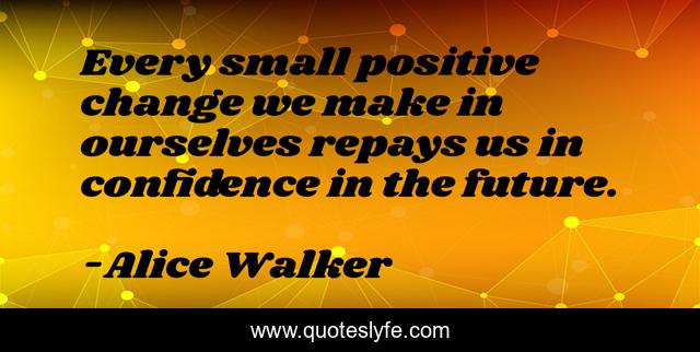 This page presents the quote "Every small positive change we make in ourselves repays us in confidence in the future.". Author of this quote is Alice Walker. .