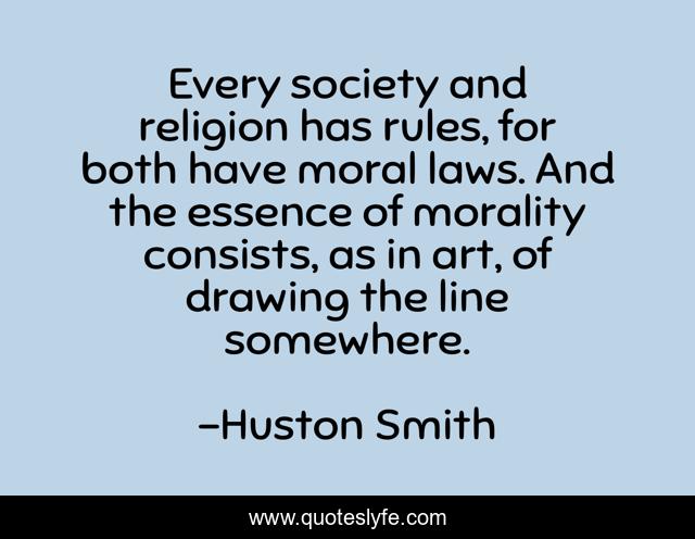 This page presents the quote "Every society and religion has rules, for both have moral laws. And the essence of morality consists, as in art, of drawing the line somewhere.". Author of this quote is Huston Smith. This quote is about rules, society, art,.