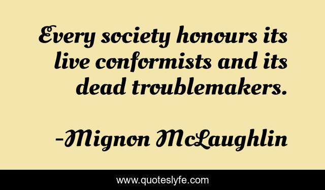 This page presents the quote "Every society honours its live conformists and its dead troublemakers.". Author of this quote is Mignon McLaughlin. This quote is about society, social,.