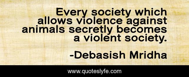 This page presents the quote "Every society which allows violence against animals secretly becomes a violent society.". Author of this quote is Debasish Mridha. This quote is about life, love, knowledge, inspirational, intelligence, philosophy, wisdom, quotes, affection,.