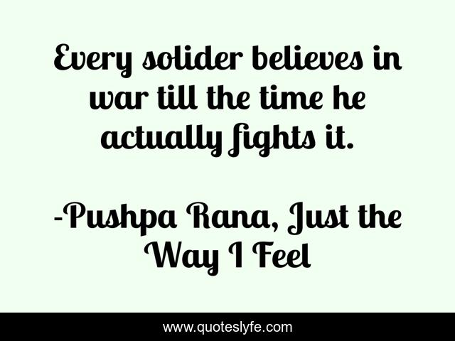 "Pushpa Rana, Just the Way I Feel Quotes." Quoteslyfe.com, 2025. Fri. 05 Dec. 2025. <https://www.quoteslyfe.com/quote/Every-solider-believes-in-war-till-the-111421>.