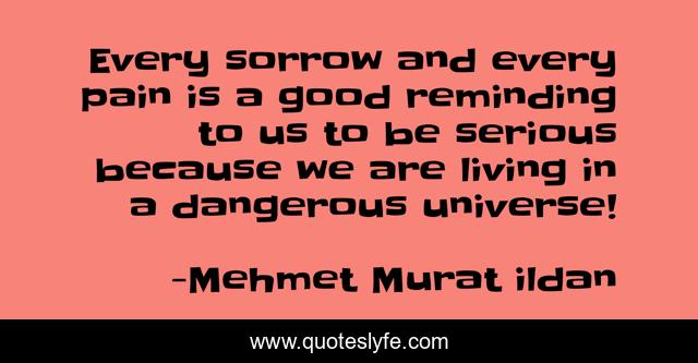 This page presents the quote "Every sorrow and every pain is a good reminding to us to be serious because we are living in a dangerous universe!". Author of this quote is Mehmet Murat ildan. .