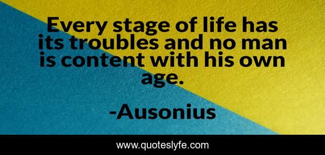 This page presents the quote "Every stage of life has its troubles and no man is content with his own age.". Author of this quote is Ausonius. .