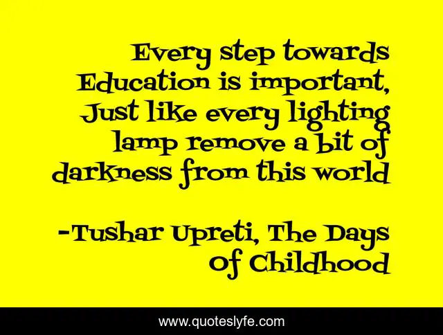 "Tushar Upreti, The Days Of Childhood Quotes." Quoteslyfe.com, 2025. Mon. 08 Dec. 2025. <https://www.quoteslyfe.com/quote/Every-step-towards-Education-is-important-Just-241158>.