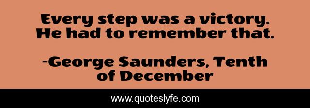 This page presents the quote "Every step was a victory. He had to remember that.". Author of this quote is George Saunders, Tenth of December. This quote is about perseverance, victory,.