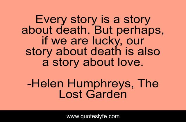 This page presents the quote "Every story is a story about death. But perhaps, if we are lucky, our story about death is also a story about love.". Author of this quote is Helen Humphreys, The Lost Garden. This quote is about love, death, stories, affection,.