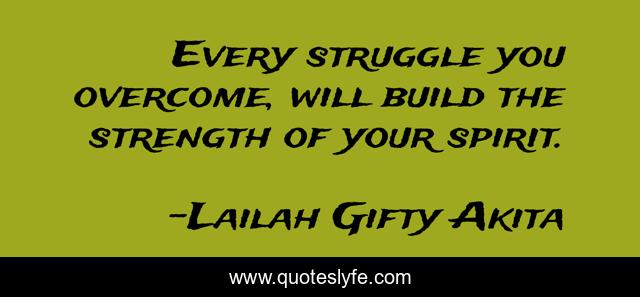 This page presents the quote "Every struggle you overcome, will build the strength of your spirit.". Author of this quote is Lailah Gifty Akita. This quote is about child-abuse, faith, spiritual, strength, pain, uplifting, obstacles, troubles, struggles,.