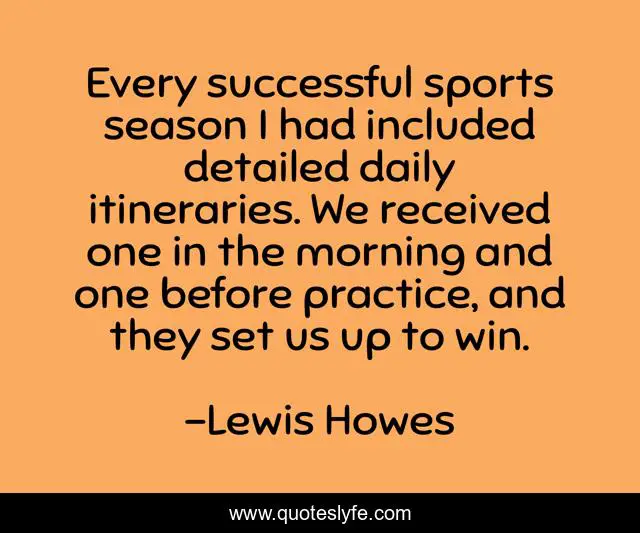 This page presents the quote "Every successful sports season I had included detailed daily itineraries. We received one in the morning and one before practice, and they set us up to win.". Author of this quote is Lewis Howes. This quote is about successful, daily, morning,.