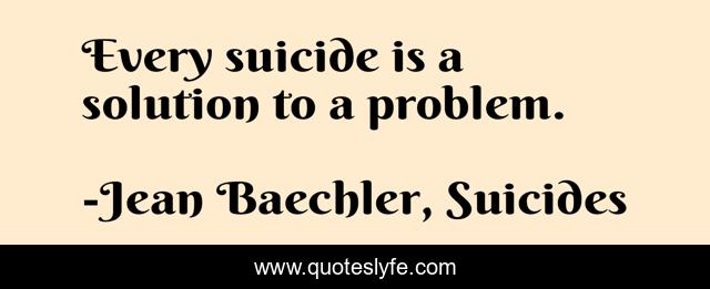 "Jean Baechler, Suicides Quotes." Quoteslyfe.com, 2025. Sat. 06 Dec. 2025. <https://www.quoteslyfe.com/quote/Every-suicide-is-a-solution-to-a-21761>.