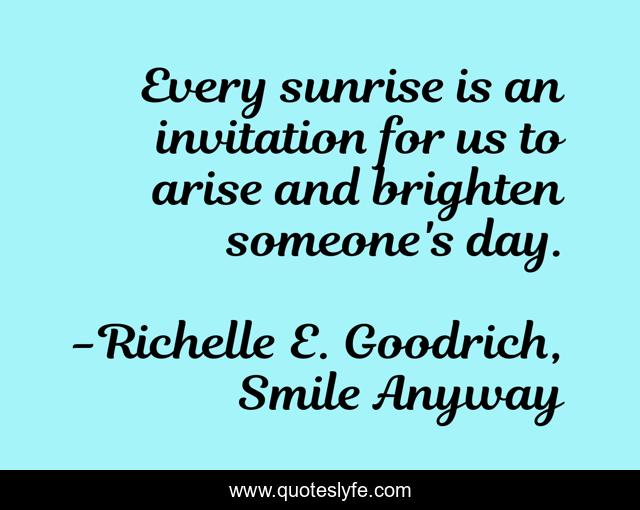 "Richelle E. Goodrich, Smile Anyway Quotes." Quoteslyfe.com, 2025. Sat. 06 Dec. 2025. <https://www.quoteslyfe.com/quote/Every-sunrise-is-an-invitation-for-us-136196>.