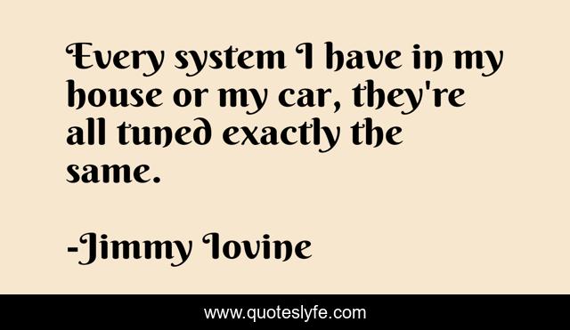 This page presents the quote "Every system I have in my house or my car, they're all tuned exactly the same.". Author of this quote is Jimmy Iovine. This quote is about house, system, same,.