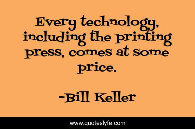 This page presents the quote "Every technology, including the printing press, comes at some price.". Author of this quote is Bill Keller. This quote is about press, price, printing,.