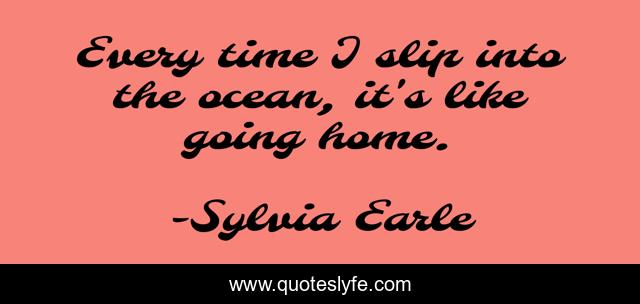 This page presents the quote "Every time I slip into the ocean, it's like going home.". Author of this quote is Sylvia Earle. This quote is about going home, time, ocean,.